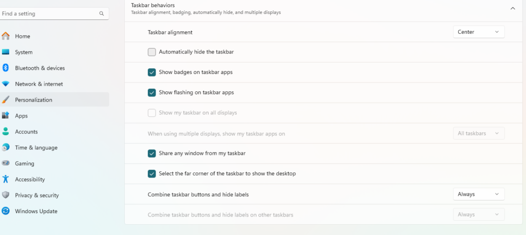 Didalam Panel Taskbar ini, silakan klik yang Taskbar behaviors